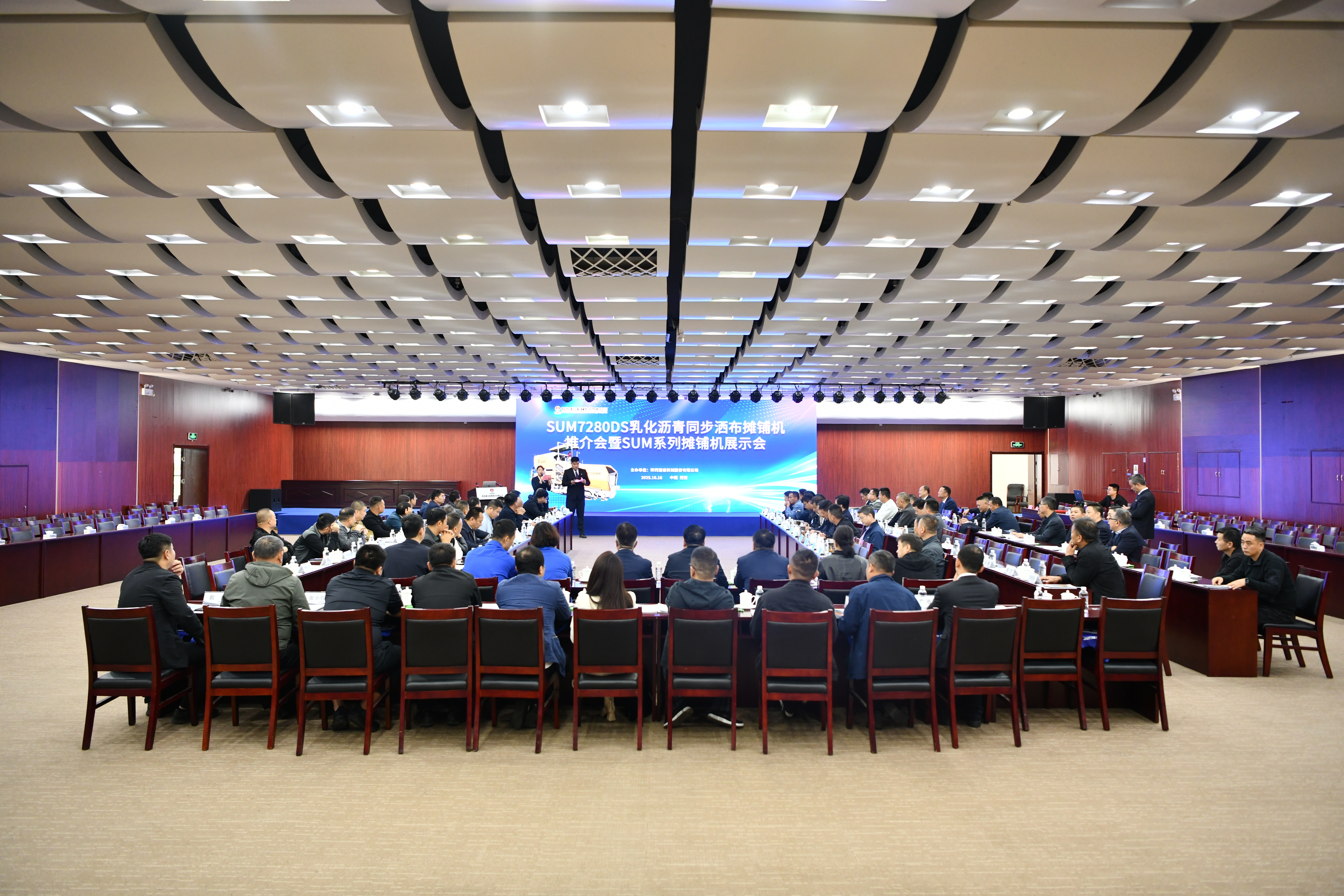 陜建機股份舉辦SUM7280DS乳化瀝青同步灑布攤鋪機推介會暨SUM系列攤鋪機展示會2025.10.16